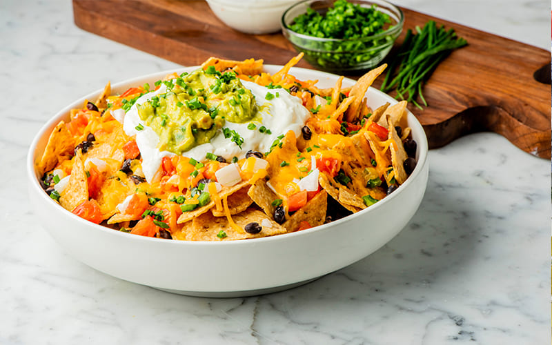 – Para un toque fresco, decora los nachos con guacamole: mezcla una palta cortada en cubitos con un poco de cilantro picado.